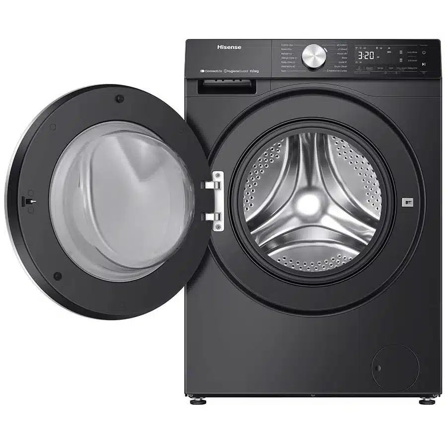 The Hisense Washer Dryer perfect for families or anyone with heavy laundry demands. Thanks to its 10kg washing and 6kg drying capacity, you can handle larger laundry loads in a single cycle.